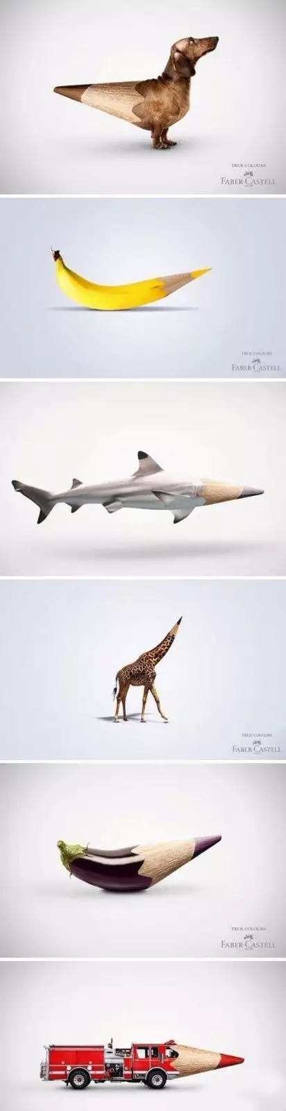 德國(guó) Faber-Castell公司推出彩色鉛筆,廣告詮釋與它們本身的顏色接近的事物